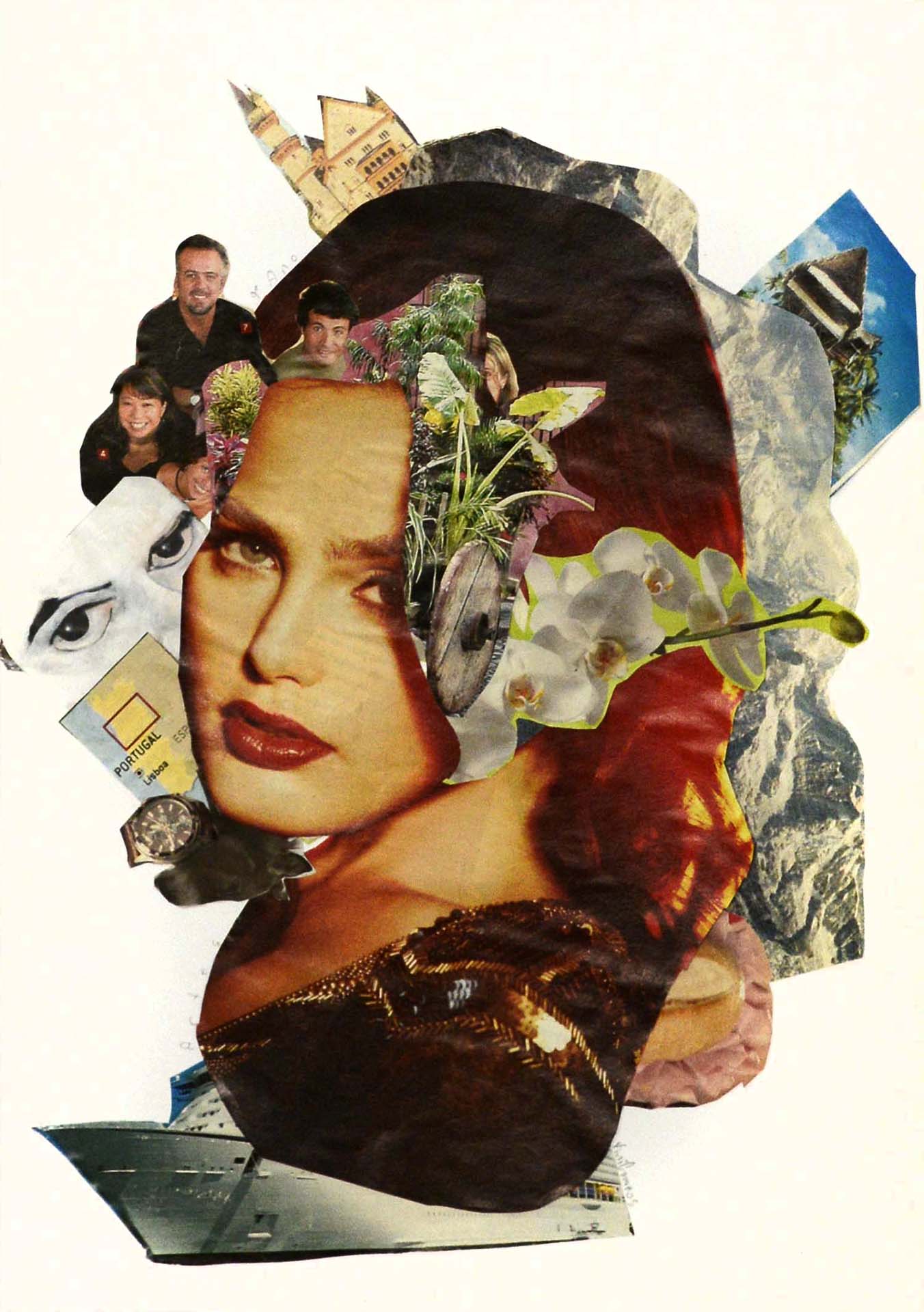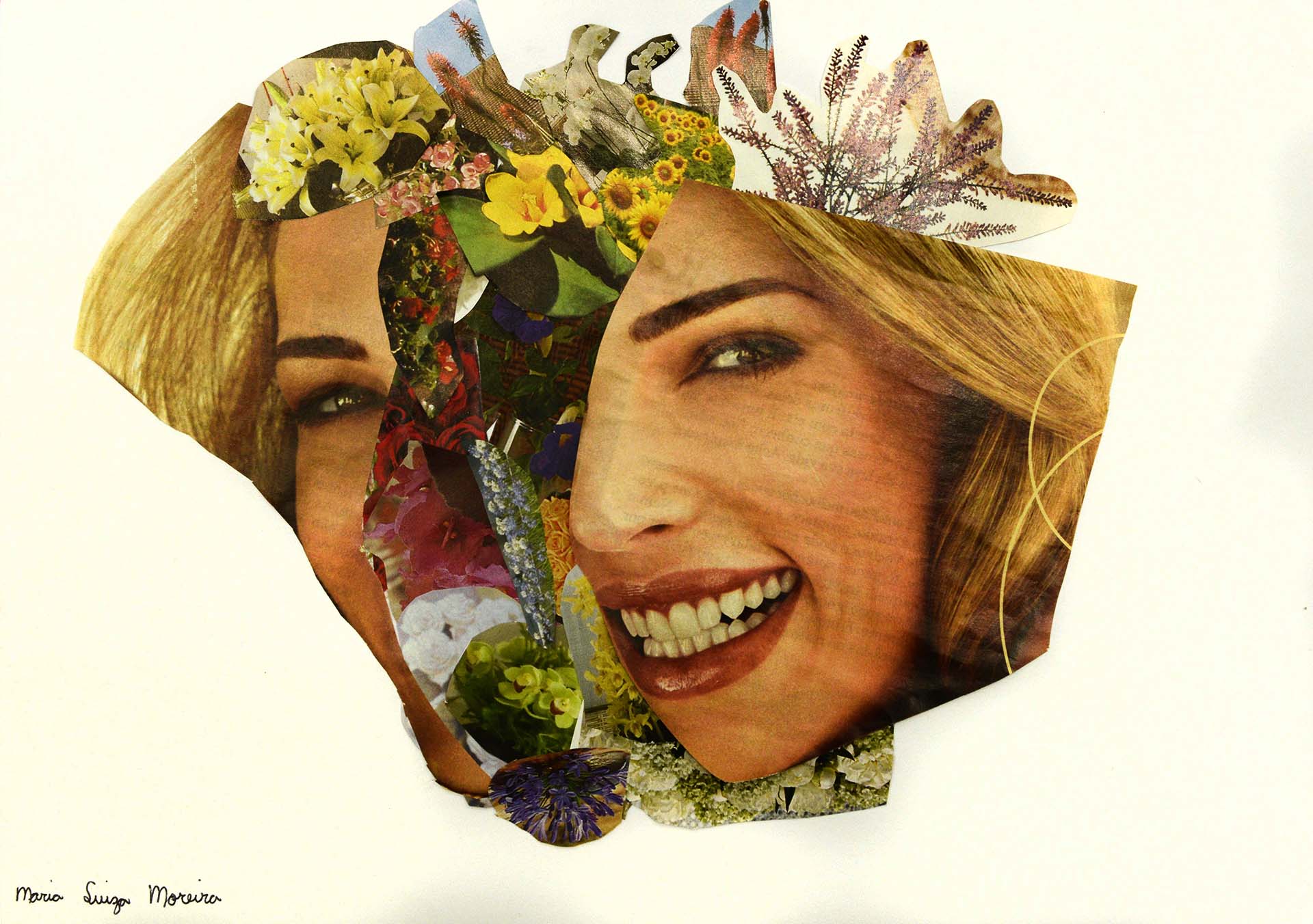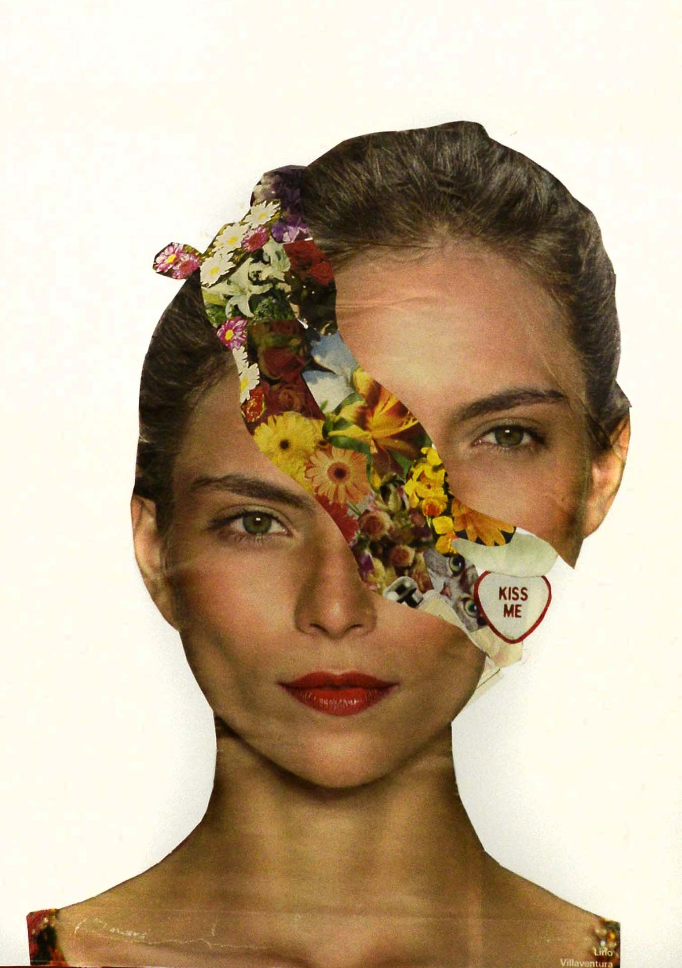 Marcelo Monreal nasceu em São Paulo em 1978. A série intitulada Faces [ON] Bonded (acima, reprodução de uma das imagens da série), traz rostos de atores, modelos e artistas brasileiros, recortados e entremeados com flores.