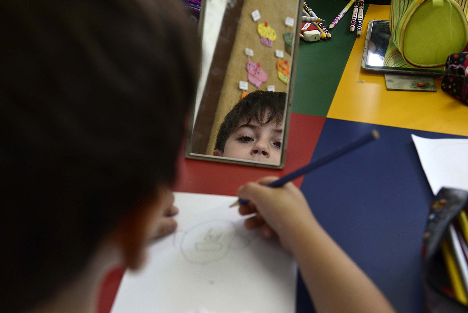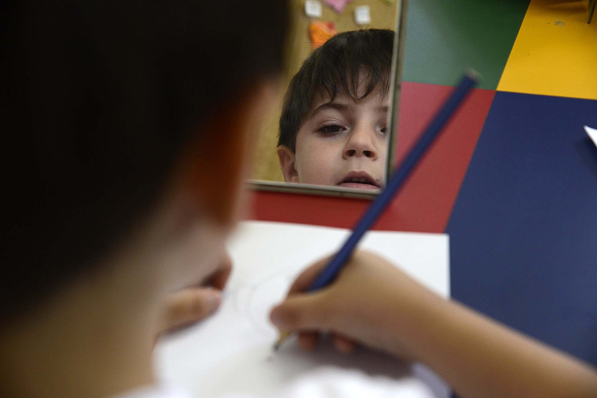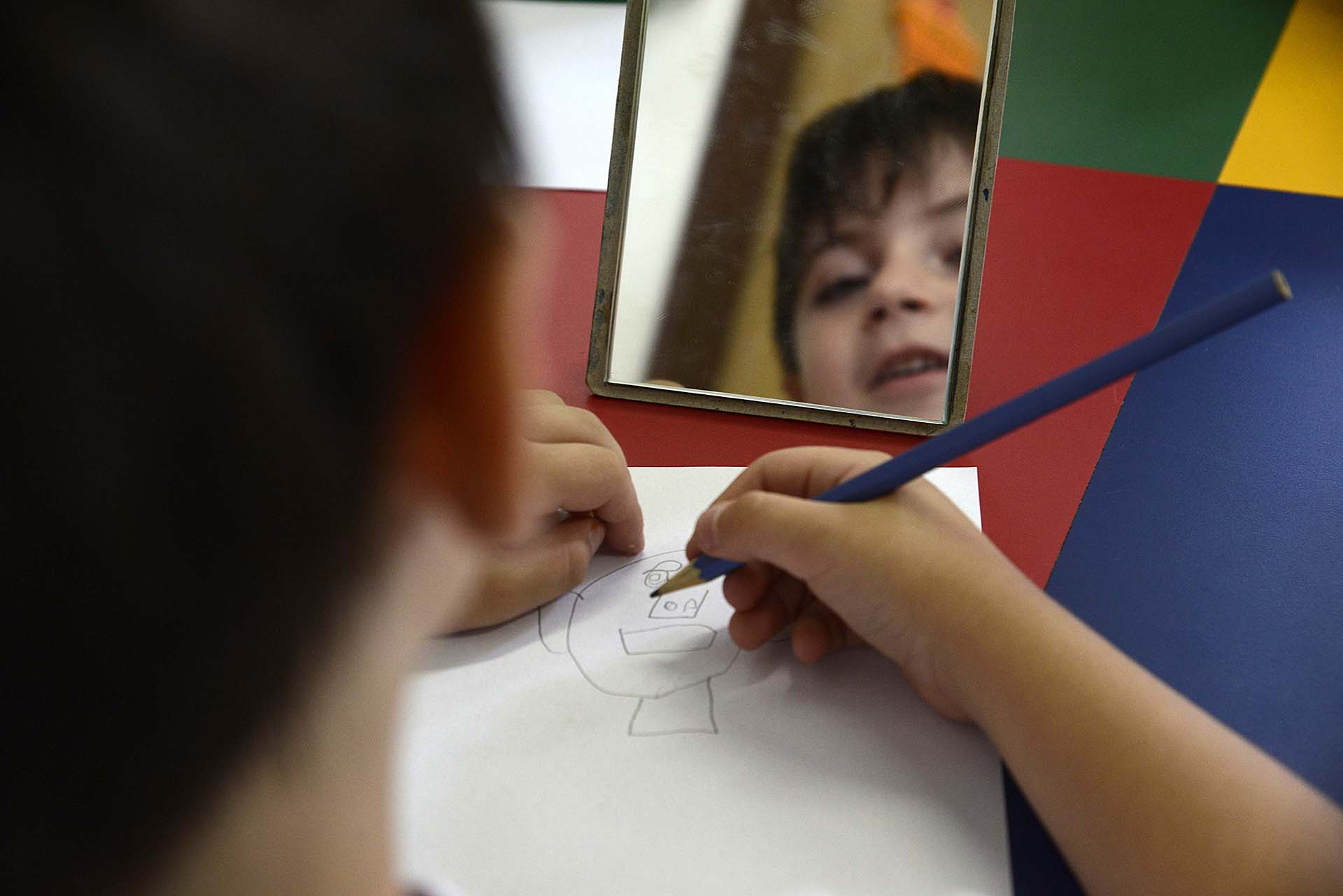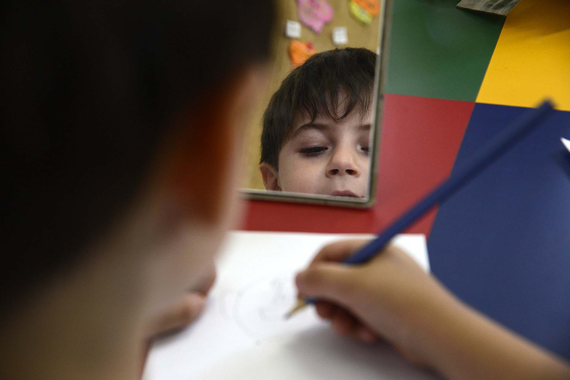 Iniciando este trabalho de percepção, o 1° ano realizou uma atividade com espelhos observando algumas de suas características físicas. Após esta observação, e ainda utilizando o espelho, as crianças fizeram seu autorretrato.
