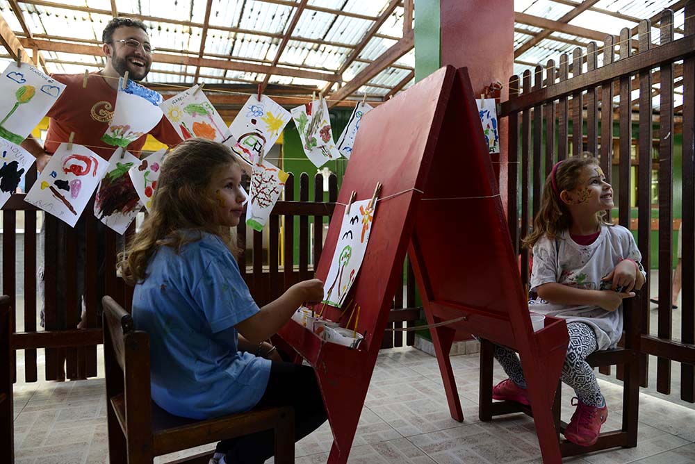 Já Marina e Bernardo Clausi, pais de Clarisse, de 5 anos, e de Bianca, de 3 anos, estão surpresos com a felicidade e a liberdade das filhas. “As crianças têm liberdade e é tudo organizado, uma energia ótima e uma afetividade nítida”, enfatiza Marina.