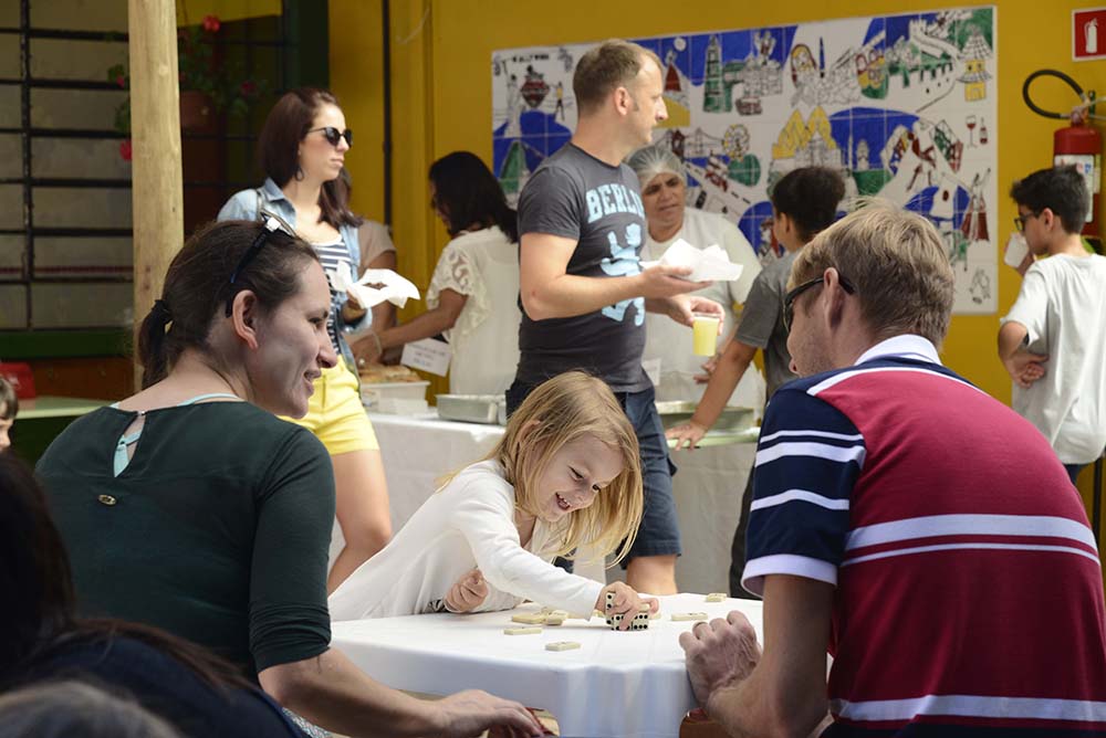 Tanto as famílias que já estão na Terra Firme há anos, como algumas das que chegaram este ano estiveram no Dia da Família. Pais e mães veteranos, que no passado tiveram filhos na escola e agora retornam, como é o caso de Luciano de Almeida com a sua filha Giovana Weiss, participaram com muita alegria do evento. Ela está no Jardim III e Luciano retornou à Terra em busca dessa relação que a escola incentiva e possibilita. “Hoje o espaço da escola nos envolve e é uma oportunidade de nos conhecermos, nos relacionarmos sem a formalidade das cadeiras das escolas tradicionais”, diz.