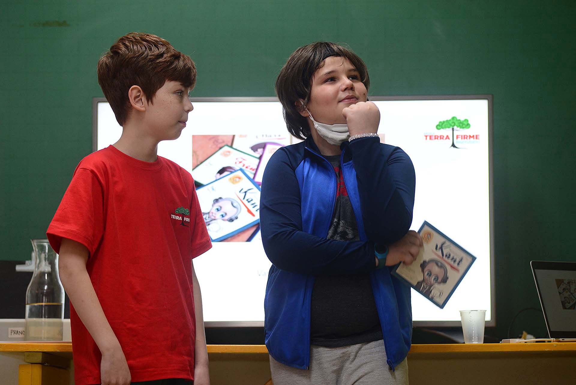 O professor Willian Mac Cormick Maron é psicólogo, psicanalista e doutor em Filosofia. Leciona na Universidade Tuiuti e é pai de Ian, do 5º ano. Foi dele a aula, apresentada com a participação do filho, que encantou os alunos e alunas. Logo no início, Willian disse às crianças que elas têm características que os filósofos também possuem: criatividade, imaginação e, principalmente, curiosidade. “Nem todo adulto tem isso. Tem adulto que acredita que já sabe tudo e o que caracteriza o filósofo, e também a criança, é o querer saber”.