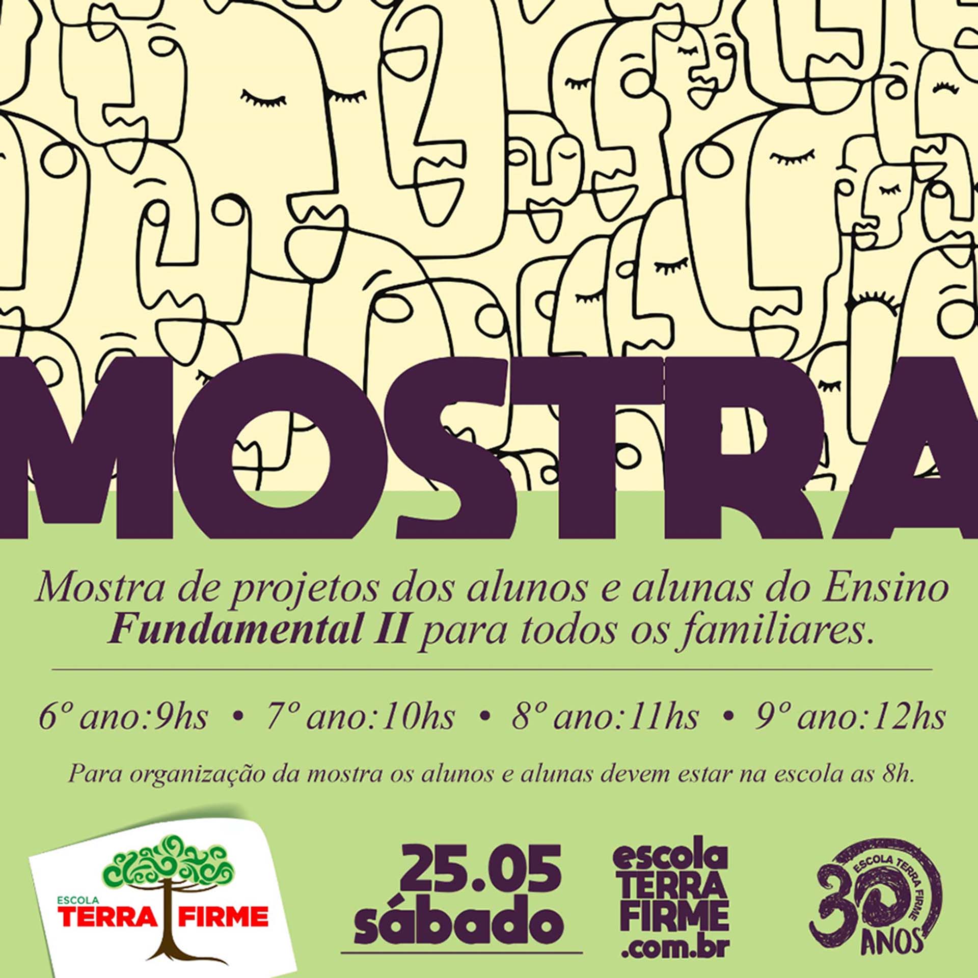 No dia 25 de maio aconteceu, na Escola Terra Firme, a primeira Mostra de Projetos do ano de 2019. Trata-se do evento em que alunos e alunas, professores e professoras, apresentam aos familiares o que foi abordado em sala no início do semestre e exibem os trabalhos realizados. Não apenas a quadra, mas outras áreas da escola ficaram repletas desses trabalhos.