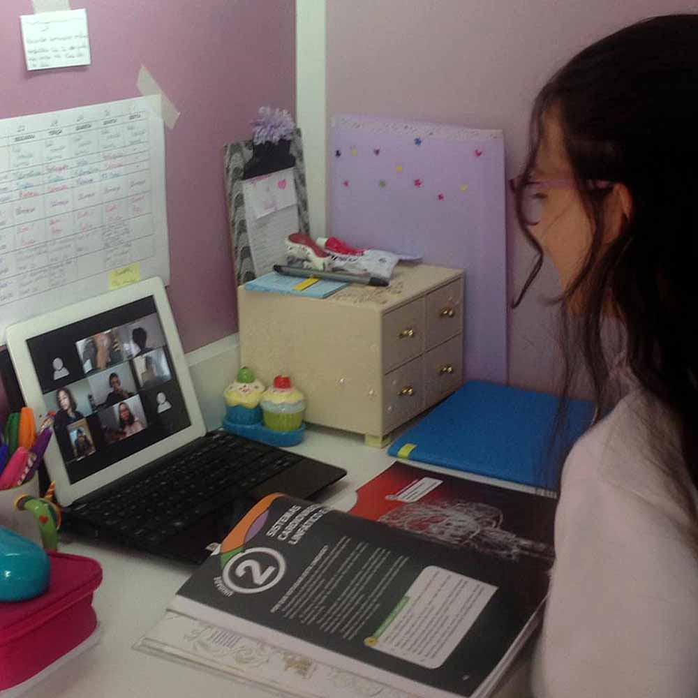 Marcella Rabassi de Lima é mãe de Helena Schmidt (2º ano K), ela percebe que as aulas online são importantes, não apenas para o aprendizado dos conteúdos das disciplinas estudadas, mas principalmente para a preservação dos bons laços que envolvem alunos e equipe pedagógica. “As aulas estão ajudando a interação, são uma forma de manter o vínculo com a escola, amigos e professores, o que é muito importante. Helena assistiu a todas, e estamos fazendo atividades com ela em casa, como leitura e exercícios de matemática, para manter o ritmo de estudo”.