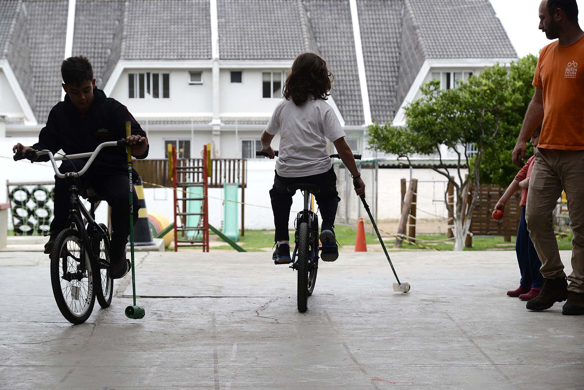 Na abertura da oficina, Tissa falou aos alunos e alunas sobre o surgimento e o desenvolvimento da bicicleta na história, e Fernando Rosenbaum, coordenador geral da CicloIguaçu (Associação de Ciclistas do Alto Iguaçu), abordou a temática da presença da bicicleta na cidade como veículo de transporte, a legislação de trânsito que diz respeito ao ciclismo e deu dicas sobre cuidados a tomar na rua. Depois das aulas teóricas e práticas, foi a hora de exercitar as habilidades no comando das bikes e uma inusitada “corrida” para ver quem chegava por último foi realizada, bem como uma animada partida de bike polo.