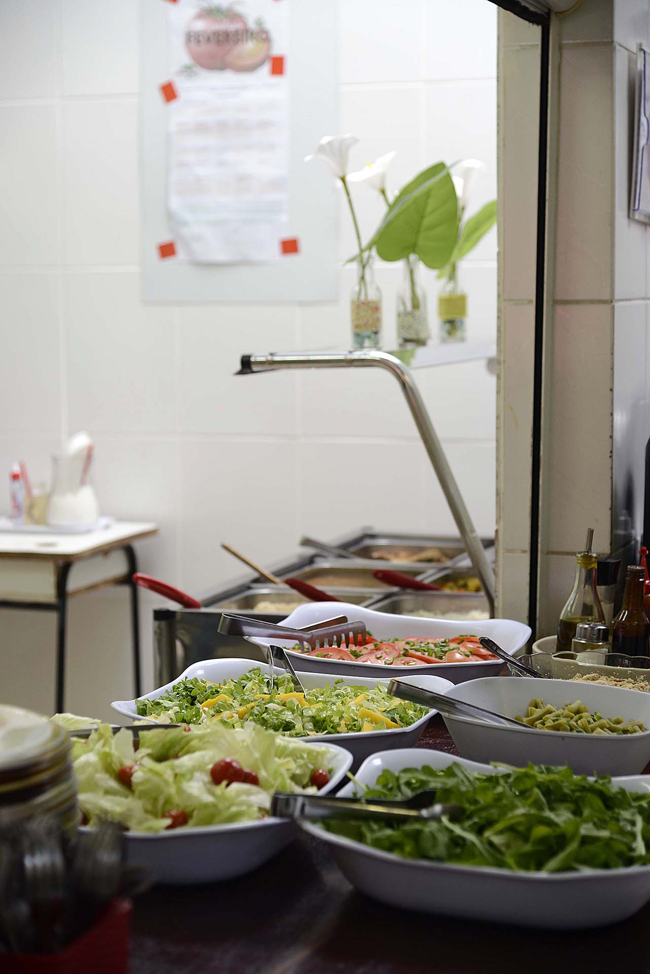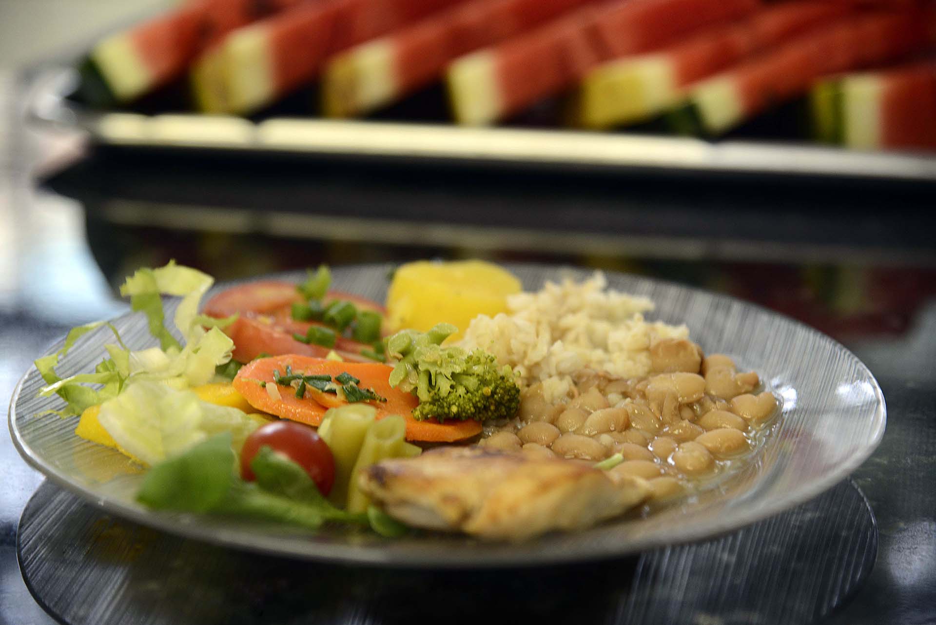 Almoço saudável – No almoço, há sempre a combinação de arroz (branco e integral) e feijão, fontes de proteína e carboidratos, saladas e legumes variados e sucos naturais de frutas frescas, feitos na hora. Isso, sem falar nas sobremesas, com frutas da estação. Os “pratos preferidos” são muitos: nhoque, purê de batata, lasanha, macarrão, tomate recheado e brócolis, preparado de várias maneiras, além do fricassê de frango e do estrogonofe.