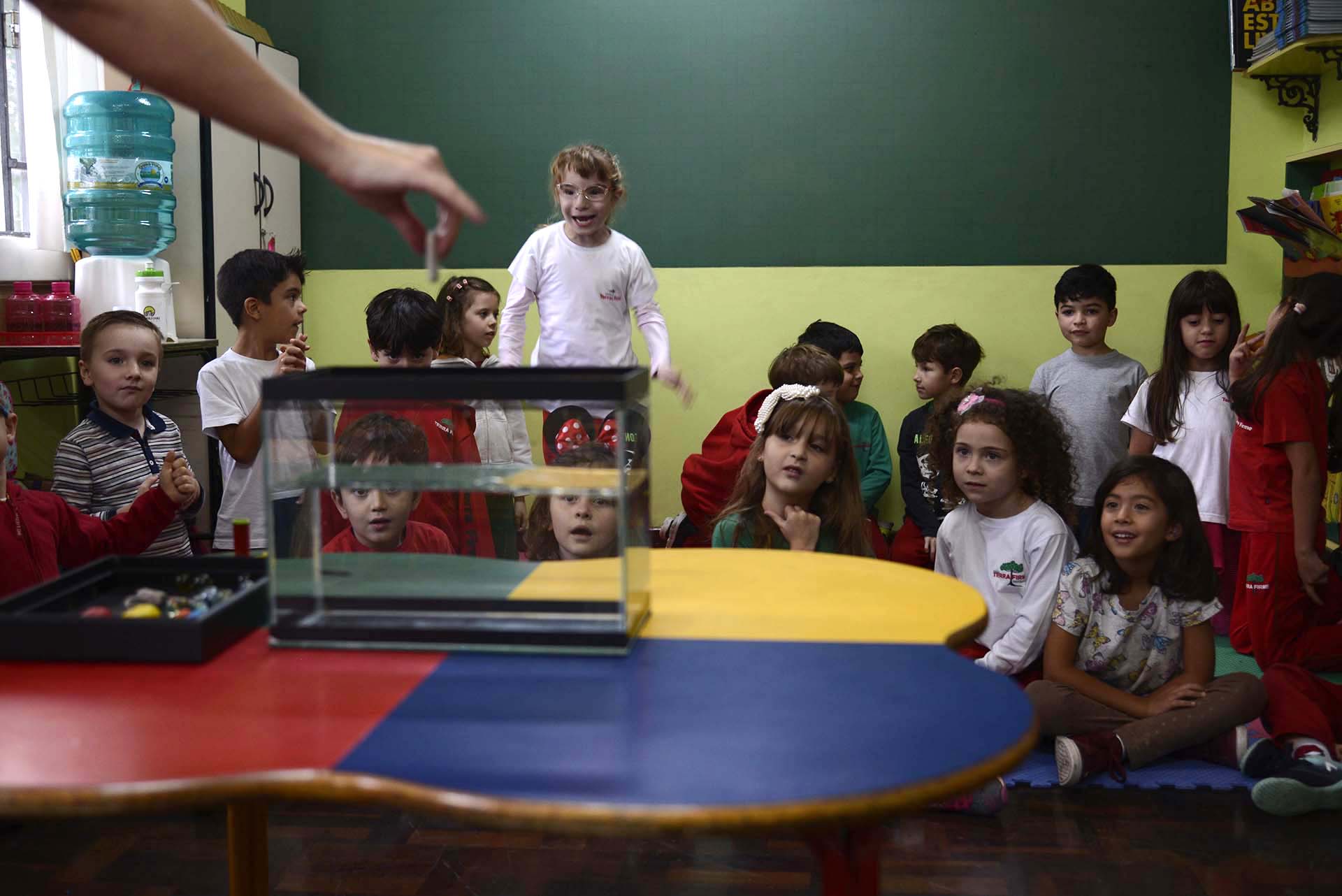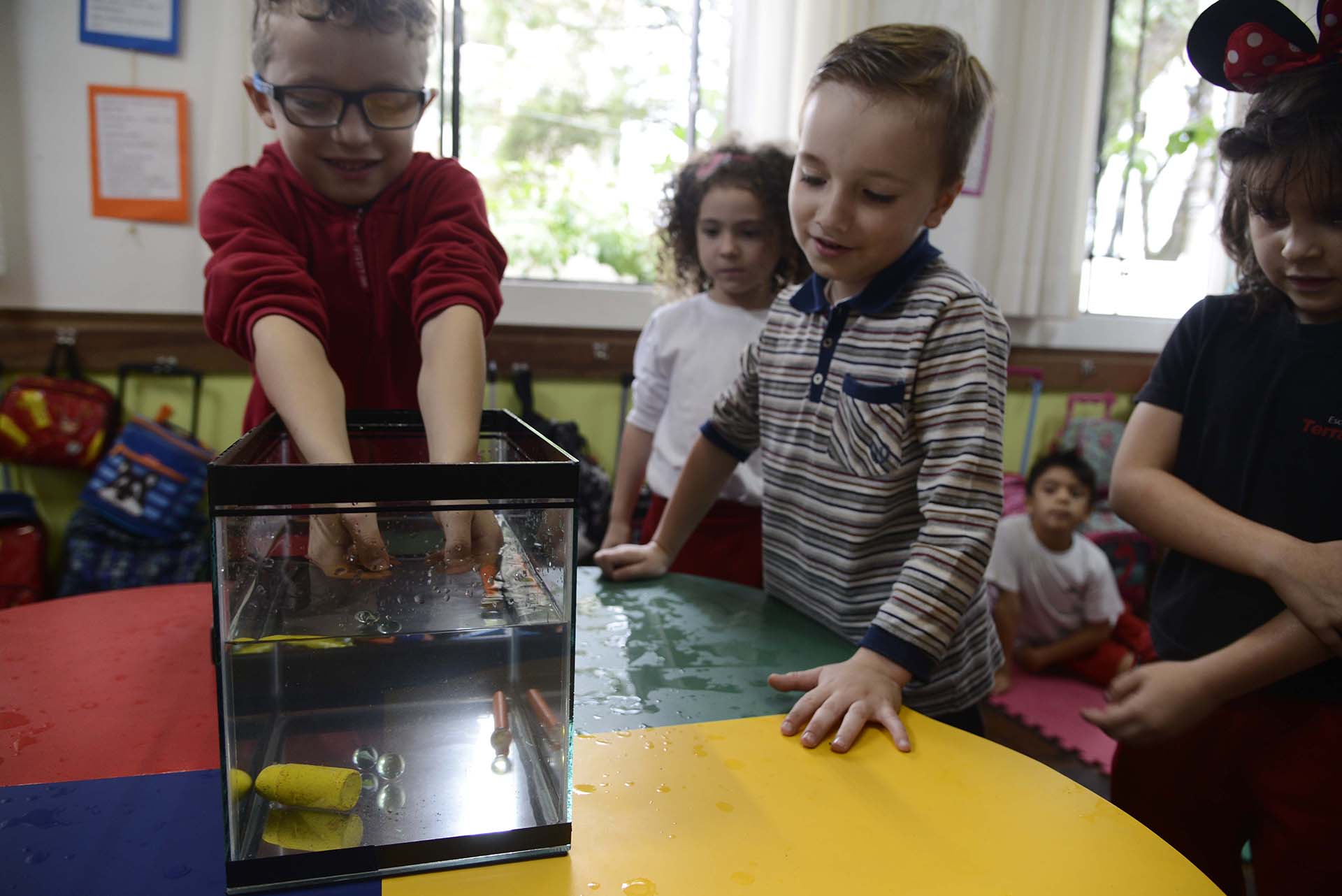A Escola Terra Firme tem uma proposta de trabalho pedagógico que incentiva os alunos e alunas a pensar. Desde cedo, as crianças são convidadas a aprender de maneira significativa, conjugando o espírito do brincar à formação paulatina dos conceitos importantes para compreender os fenômenos e acontecimentos do mundo. Na aula do 1° Ano F, por exemplo, meninos e meninas de idades entre 6 e 7 anos puderam viver intensamente o processo de iniciação ao pensamento científico, integrando a ludicidade à formação de conceitos. Hipóteses foram formuladas e testadas por meio da experimentação, obtendo confirmação ou não, e o registro desse processo foi realizado logo após as experiências em uma tabela, tudo como deve fazer um bom cientista mirim.