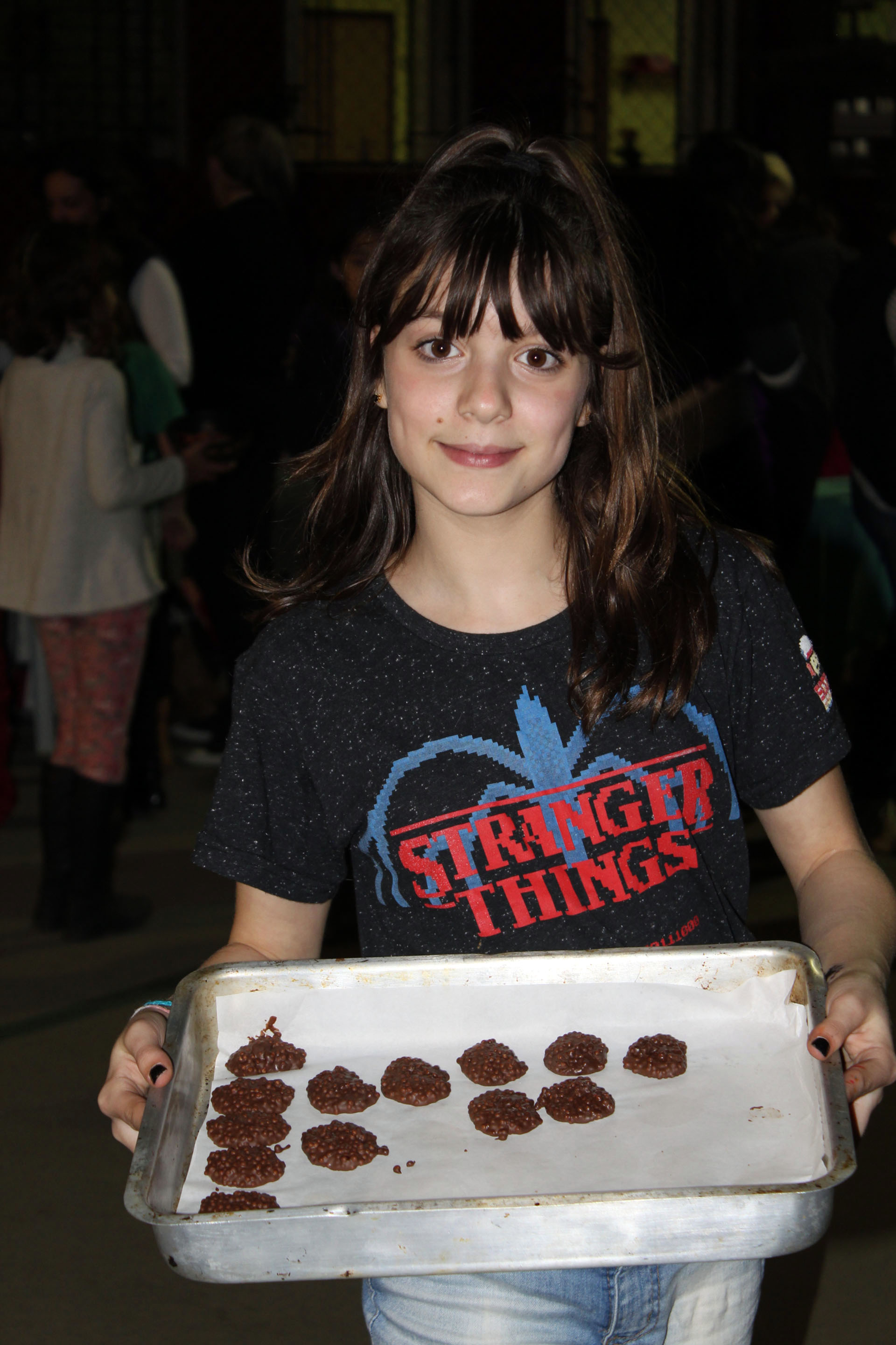 Chocolate orgânico – Sabina Dessartre Mendonça é irmã da Lisa, que cursa o 3º ano, e vendeu chocolates orgânicos. Preocupada com o meio ambiente, ela diz que o seu produto é “Lixo Zero”, ou seja, não é oferecido em plásticos ou embalagens poluentes, mas ao natural ou em papel facilmente reciclável. Todas as etapas de produção do chocolate são feitas por ela, que somente utiliza produtos orgânicos certificados e está em processo de conseguir a sua própria certificação. “Todos os produtos, o cacau, a manteiga de cacau e o açúcar, que são os únicos ingredientes que uso, são orgânicos e certificados, de excelente qualidade”, disse. Seus chocolates foram muito elogiados.