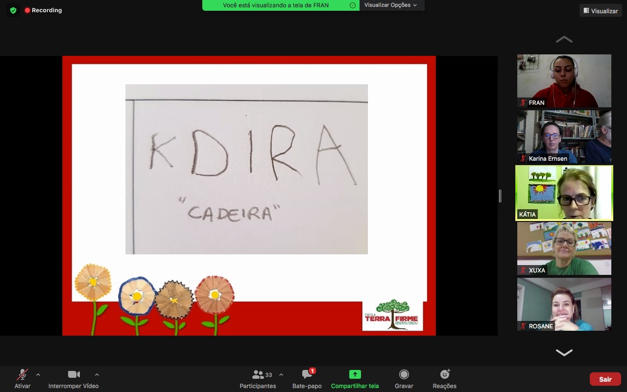 Sandra avalia a Oficina de Alfabetização como fundamental, principalmente na realidade do distanciamento social. “Precisamos saber como as famílias estão, mostrar como trabalhamos e, neste momento em que os pais e mães não podem entrar na escola, a oficina permite que eles se conscientizem acerca da proposta pedagógica da Terra Firme. É muito importante a participação das famílias na educação e nós valorizamos isso”.