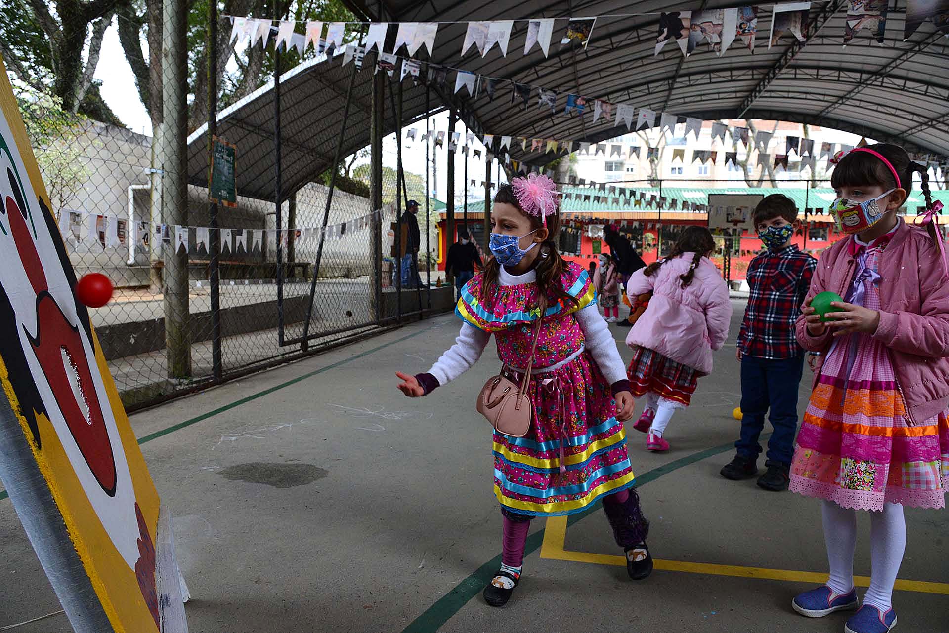 A preparação para o arraiá foi motivo de grande expectativa e dedicação. Os professores Carla Beatriz Jochims Gonçalves e Leonardo Guadagnin (Leo), que auxiliam a professora Francesca Maranho Amariz (Fran) nas atividades com o 2º ano, destacam a animação de todas as crianças. “As atenções estavam centradas na festa, tanto nas aulas on-line quanto nas presenciais. E muitos alunos que fazem aula on-line vieram para a festa”. Da mesma forma, Solange Maria Jankowski Palmeiro, a Xuxa, professora do 1º ano X, destaca o empenho e a maturidade de seus alunos e alunas nos dias que antecederam o festejo. “Eles questionaram, conscientes, como seria feita a festa e criaram formas de brincar que tornaram compatíveis a diversão e a segurança de cada um”.