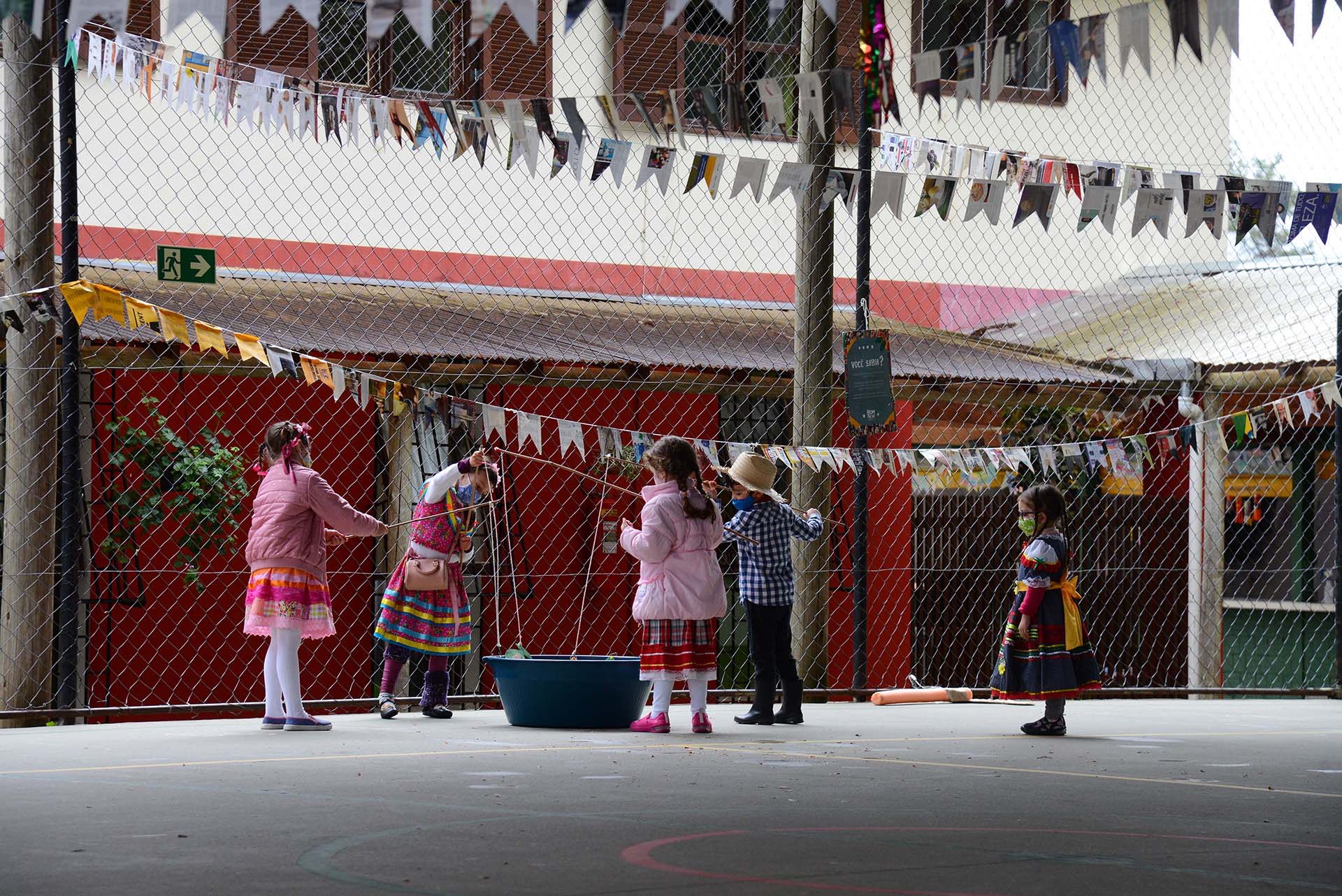 “Durante um encontro com as professoras, decidimos que cada turma teria um dia junino na escola, no qual eles poderiam brincar livremente, comer e dançar como numa festa junina das que fazíamos antes da pandemia, sempre seguindo todos os protocolos de saúde”, diz Brunna Bassetti Britto, coordenadora da Educação Infantil e do Fundamental II. Ela conta que, desde o mês de junho, o ambiente pedagógico da escola foi sendo decorado de forma bem colorida, alegre e festiva e alunos e alunas perguntavam diariamente quando seria realizada a festa. “Chegando a última semana de aula, chegou também o nosso ‘Arraiá bom que só’ e foi uma emoção muito grande ver as crianças entrando na escola caracterizadas e prontas para se divertir. Foram tardes muito divertidas, alegres e emocionantes. Fechamos o 1º semestre com o coração cheio de amor e felicidade”.