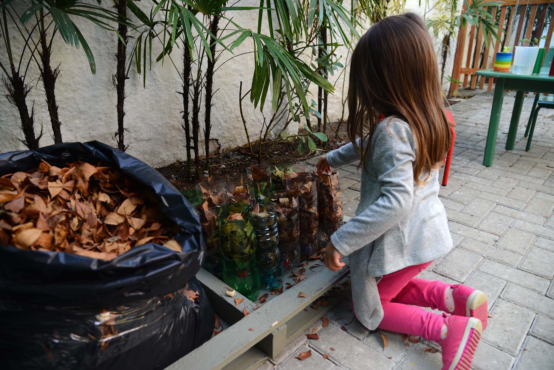 Depois de conhecer os elementos da natureza, de aprender sobre a importância de cada organismo em um ecossistema e da riqueza da biodiversidade, a turma se ocupou em saber sobre as formas de preservar os recursos naturais. Assim, passou a estudar práticas para manter saudável o meio ambiente. “Falamos da coleta seletiva, dos diferentes materiais, como o plástico, papel, vidro, metal e lixo orgânico. Cada item foi trabalhado, como é fabricado, com qual matéria prima, e a importância do reaproveitamento. O papel, por exemplo, é feito do tronco de árvores e se a gente quer preservar as árvores, separa papel para reciclagem, reaproveita e menos árvores são cortadas”, explica Priscila.