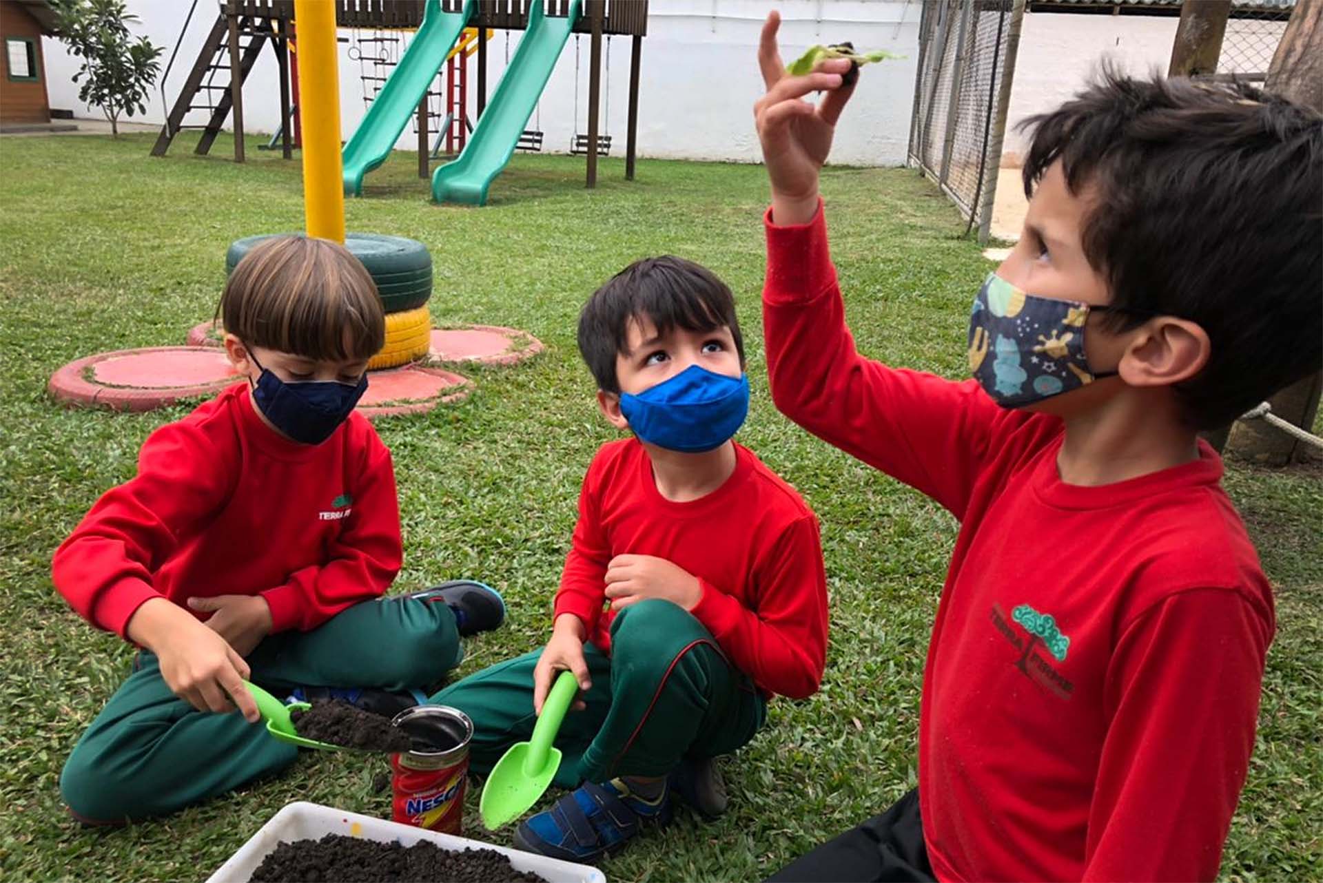 Os alunos e alunas do Grupo III embarcaram, neste trimestre, no projeto “Viajando pela Natureza”. Em um primeiro momento, aprenderam bastante sobre os animais, plantas e minerais, bem como sobre os habitats que compõem o que chamamos um ecossistema. No último mês, decidiram estudar a saúde da natureza, conhecendo as práticas de reciclagem de materiais sólidos e de compostagem. Puseram a mão na massa e na terra, plantando mudas, criando vasos para plantas e flores, jogos e brinquedos, além de minicomposteiras.