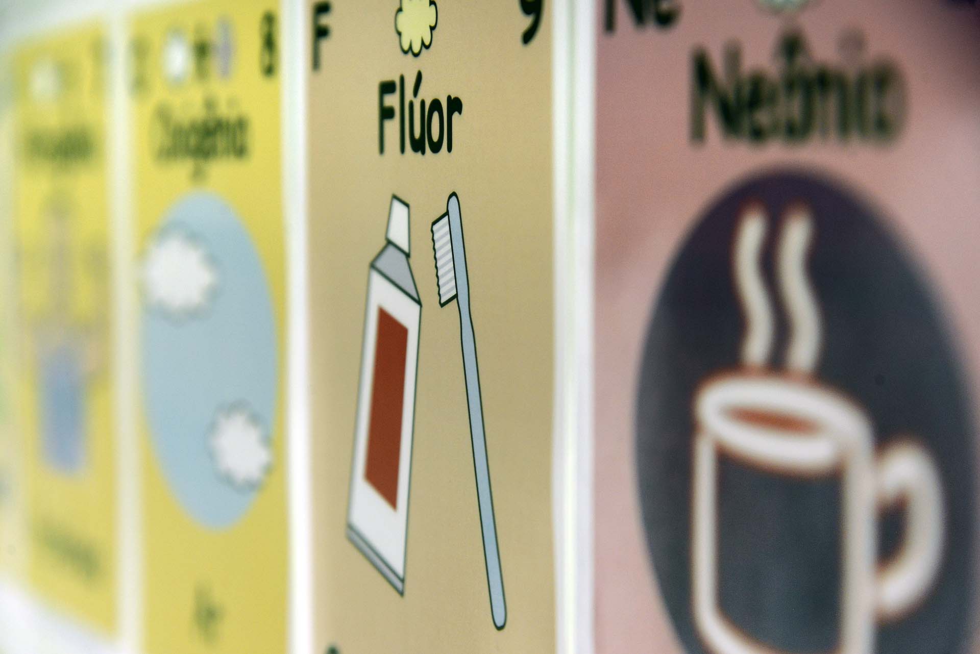 Cris conta que os alunos e alunas tinham alguma dificuldade de entender em que e para que os elementos químicos são usados, bem como as relações entre eles. A tabela periódica parecia algo estranho e distante, esquemático. Foi então que, pesquisando recursos pedagógicos na internet, a professora acessou uma página que apresentava uma tabela interativa e dinâmica, além de um atrativo modelo para imprimir e pôr na parede. Comentou isso com a turma e propôs a instalação. “A turma se interessou e grupos foram formados, cada um responsável por uma família de elementos. Todos participaram e, já nesse processo, foram entendendo melhor a classificação dos elementos químicos e a função organizadora da tabela periódica”.