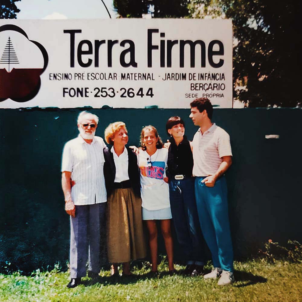 Convivências ilustres: a poeta e professora paranaense Helena Kolody; o educador francês André Lapierre, criador do método da psicomotricidade relacional, que orientou os primeiros passos de sua implementação na escola; Aryon Cornelsen, a primeira aluna, Betina Hepp e Sandra Cornelsen, no inicio dos anos 1990; e imagens da primeira sede da Terra Firme.