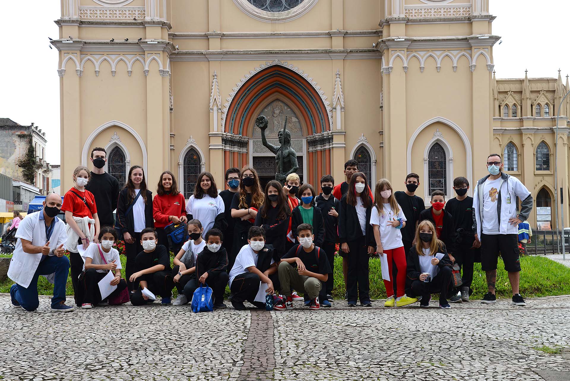 Por ocasião da comemoração dos 329 anos de Curitiba, as turmas do 6º e do 7º ano tiveram uma instigante aula interdisciplinar no Centro Histórico da cidade. Alunos e alunas puderam conhecer, in loco, marcos da fundação e do desenvolvimento urbano, como o bebedouro do Largo da Ordem, casas centenárias e a Catedral Basílica de Nossa Senhora da Luz dos Pinhais. Os professores Sidinei José da Silva e Kevin Pscheidt, respectivamente de História e Geografia, e Leonardo Guadagnin, que auxiliou na organização, comandaram a excursão.